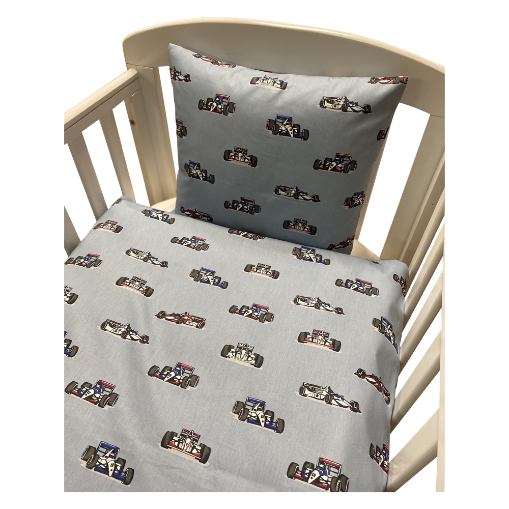Baby Sengetøj Lyseblå Med Racerbiler Opgradér dit barns soveoplevelse med vores baby sengetøj i lyseblå med racerbiler.