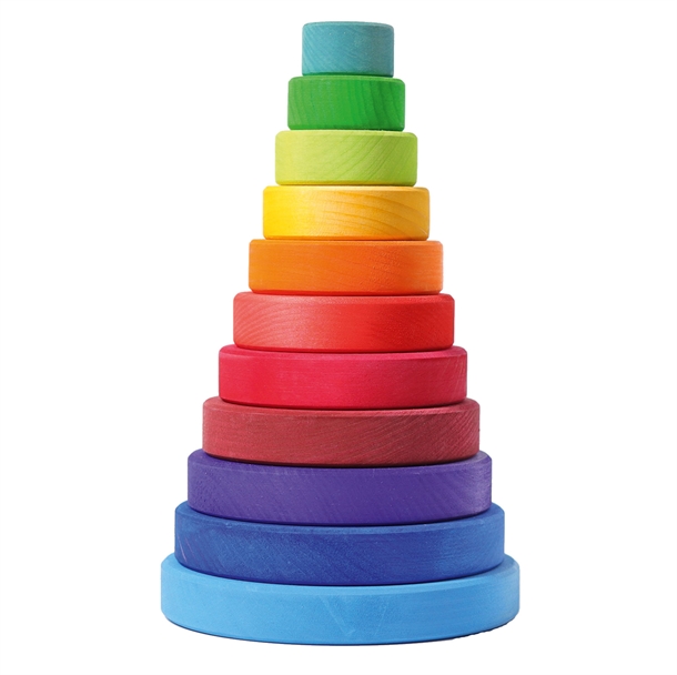 Grimms stabeltårn er lavet i FSC-certificeret, bæredygtigt træ og er garanteret giftfri. Certificerede harmløse farver efter EN 71 og CPSIA/ASTM 963 standarder.