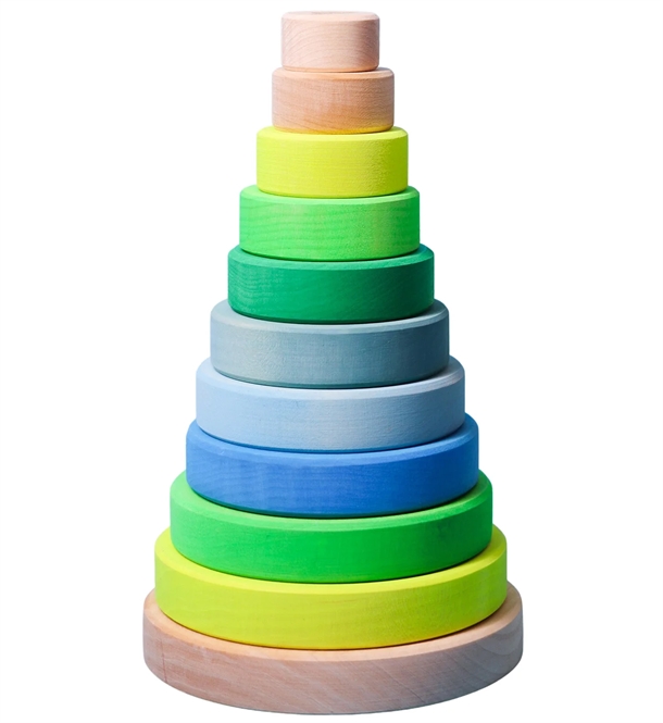 Grimms stabeltårn er lavet i FSC-certificeret, bæredygtigt træ og er garanteret giftfri. Certificerede harmløse farver efter EN 71 og CPSIA/ASTM 963 standarder.