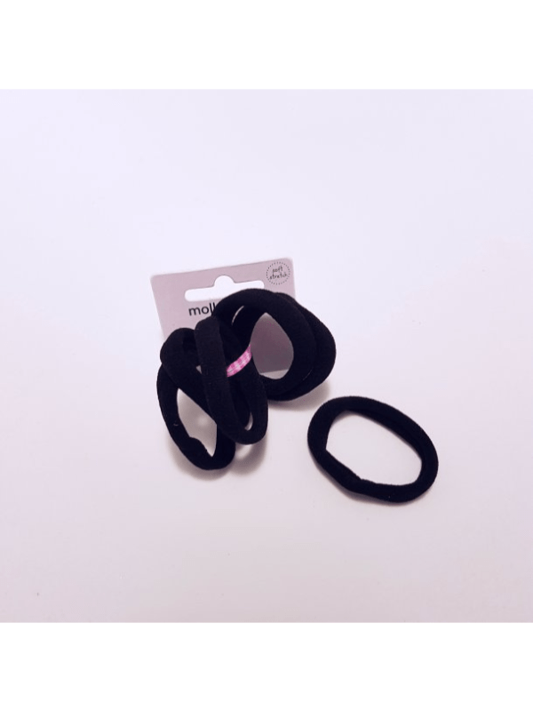 6 stk. sorte hårelastikker, som sidder virkelig godt i håret.