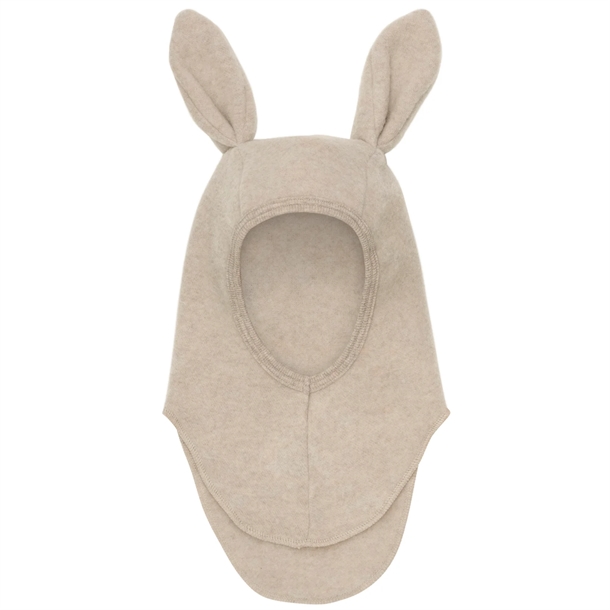 Denne Huttelihut hue er fremstillet i blød og varm merinould fleece, som både er åndbar og behagelig at have på. Huen har en rund hovedform med søde, lange kaninører, der giver et charmerende udtryk. Den smalle elastiske ribkant omk