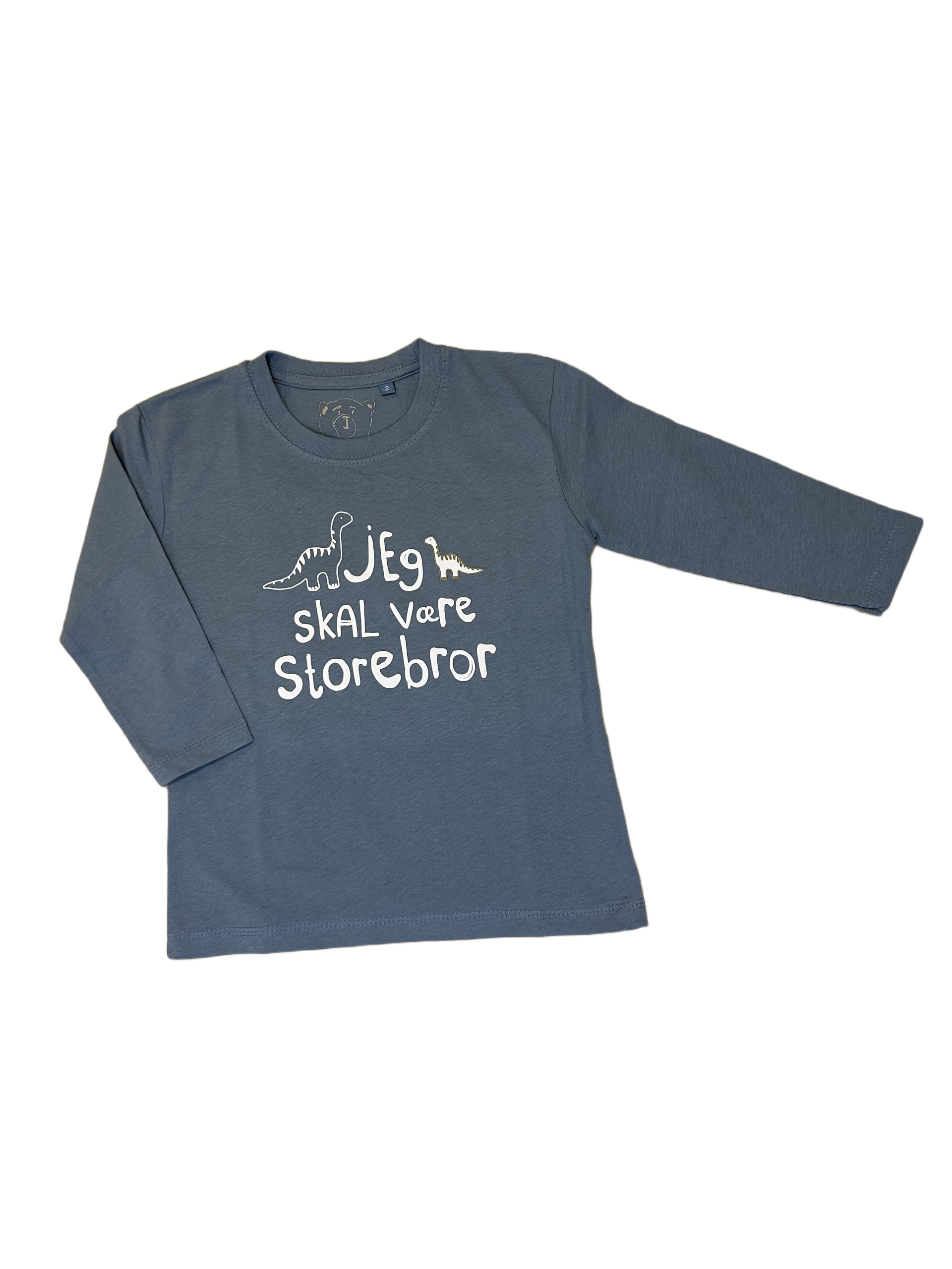 Jeg Skal Være Storebror T-shirt S/S Dinosaur Fortæl den gode nyhed på en sjov og sød måde med denne flotte “Jeg Skal Være Storebror” T-shirt med dinosaurprint.