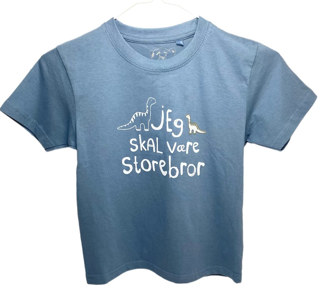 Jeg Skal Være Storebror T-shirt S/S Dinosaur Har du en der skal være storebror? En fantastisk måde at fortælle den gode nyhed på, er med denne flotte “Jeg skal være storebror t-shirt”.