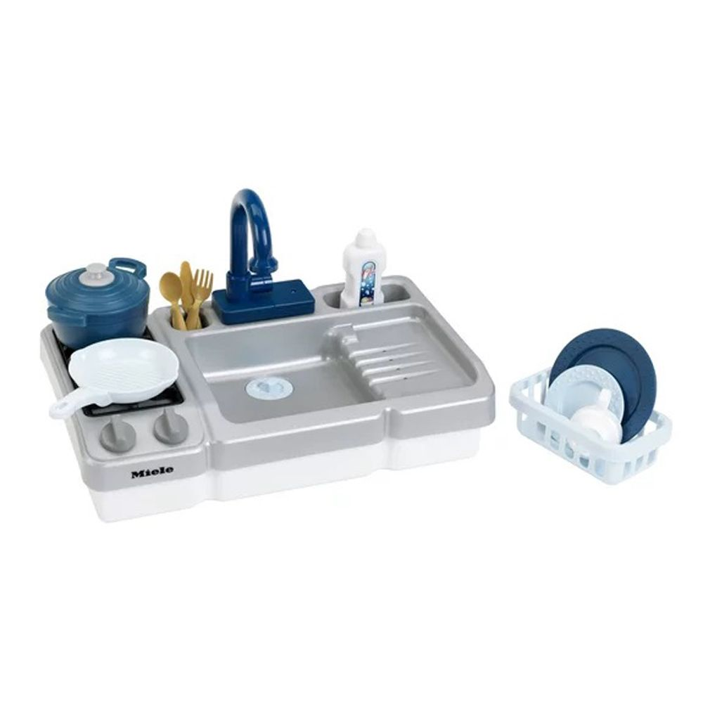 Miele vask med kogeplade vandhane med vandpumpefunktion (batteridrevet) og tilbehør: grydesæt, tallerkener, bestiksæt, afløbskurv