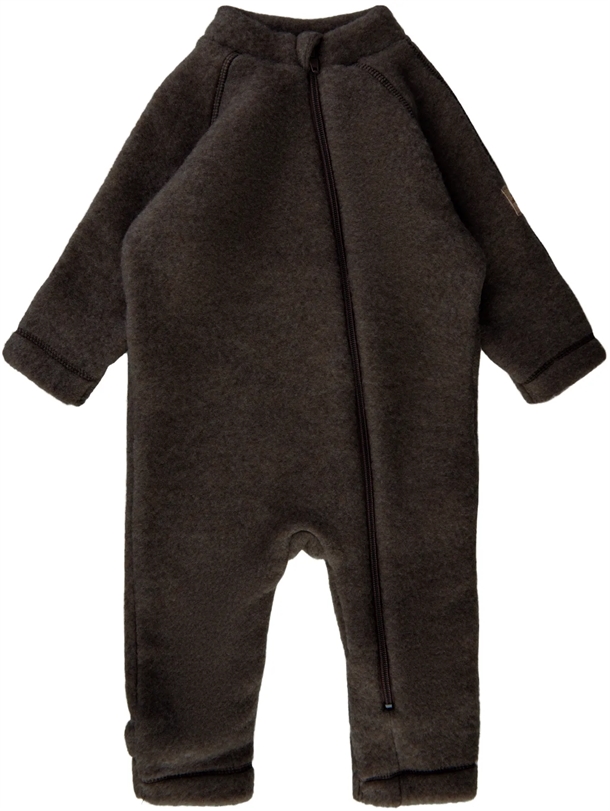 Mikk-Line Ulddragt m/lynlås & ombuk – Dark Brown Melange – Mikk-Line