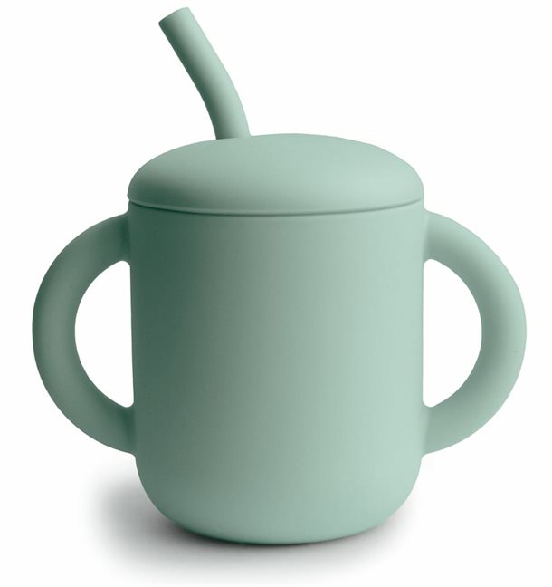 Mushie kop med sugerør Cambridge Blue – Mushie