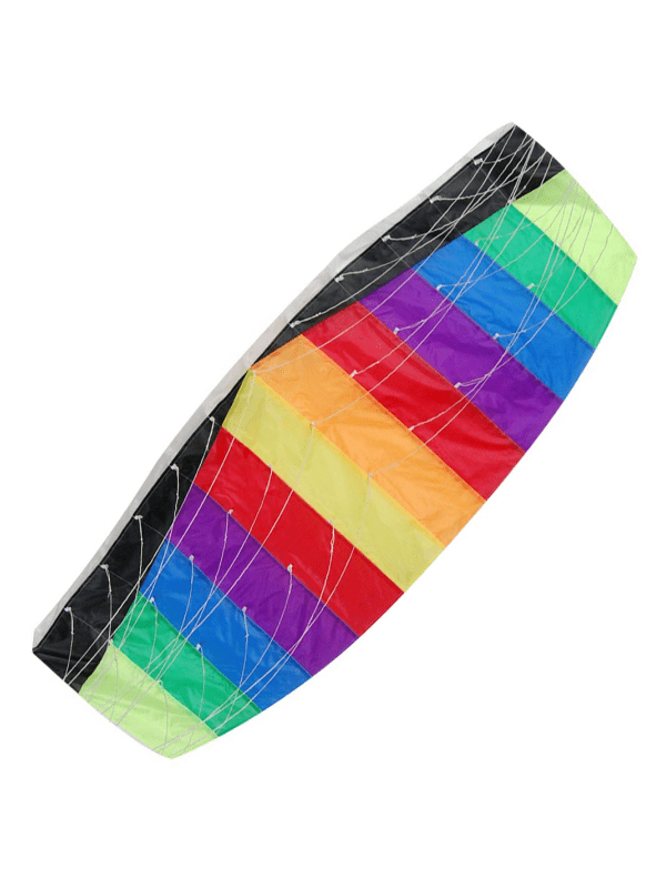 Paraglider Drage 160 Cm Paraglider drage i flotte regnbue farver. Perfekt underholdning til de blæsende dage, se hvordan dragen flyver rundt i luften. Dragen måler 160 x 60 cm og har 2 x 50 meters line.