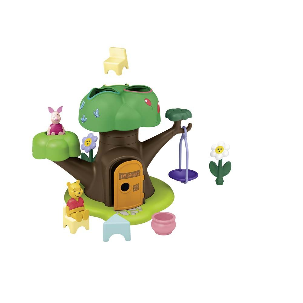 I Plys og grislings træhus er der altid noget spændende at opdage: I trækronen kan forskellige genstande sorteres efter form og farve for at træne finmotorikken og den tredimensionelle tænkning. Ved hjælp af en skjult rutsjebane kommer disse objekter igen