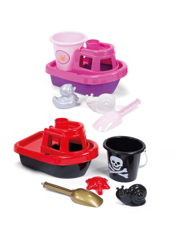 Sandsæt Skib 5 Dele Pirat/Prinsesse Fint sandsæt til børn, i plastik. Sættet indeholder 5 dele et skib, spand, skovl og 2 figurer. Obs denne vare er assorteret. Skrive i kommentarfelt om du ønsker prinsesse-eller piratversion.