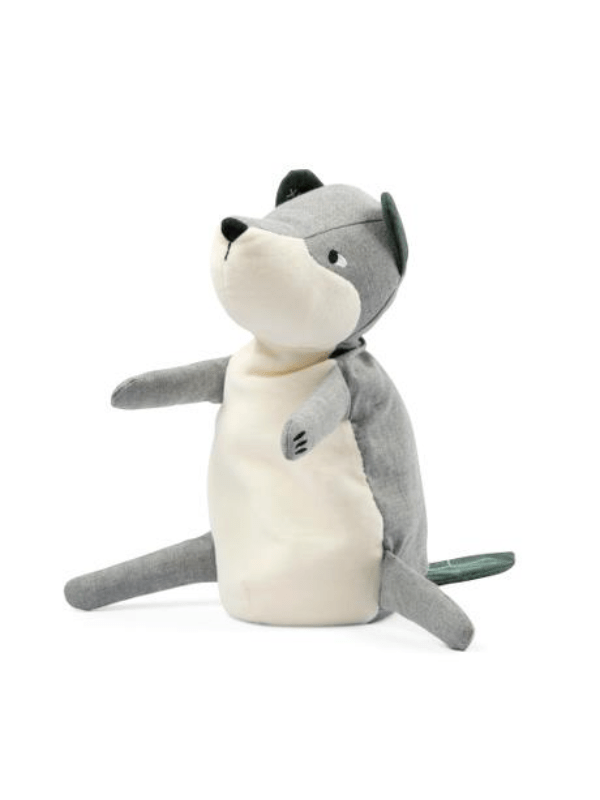 Sebra Stofdyr Ulven Moon Ulven er det sødeste stofdyr fra Sebra. Den er hvid og grå, med mørkegrøn hale og øre. I halen er der knitrepapir, der siger en sjov lyd når man rører ved den.