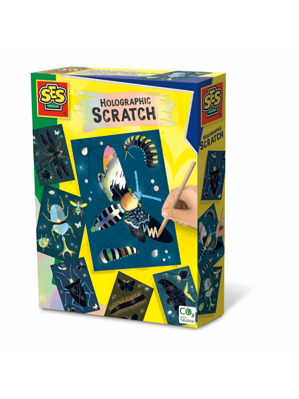 SES Creative Skrabeark – Holografiske De fineste skrabekort fra SES Creative. Kortene er med seje insekter, der er gemt under skrabelaget, med en holografisk farveeffekt.