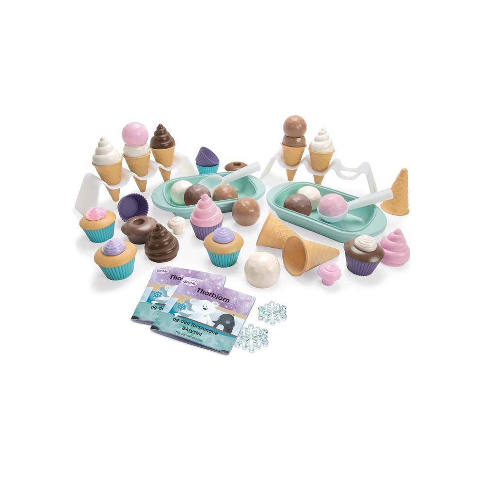Thorbjorn Frosty Desserts børnehavesæt med uendelige kombinationsmuligheder. Med sættet følger bl.a. også 2 eksemplarer af den spændende bog om Thorbjorn og den forsvundne iskrystal. Det magiske univers fra bogen kan overføres til sættet, som også indehol