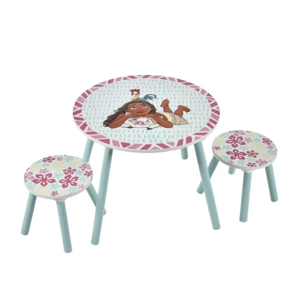 Bring eventyrets ånd ind i dit barns værelse med Disney Moana bord- og skammelsættet. Dette charmerende sæt i træ har levende Moana- og Heihei-grafik, hvilket gør det perfekt til kreativ leg og snacks. Med sin robuste konstruktion for langvarig brug og en