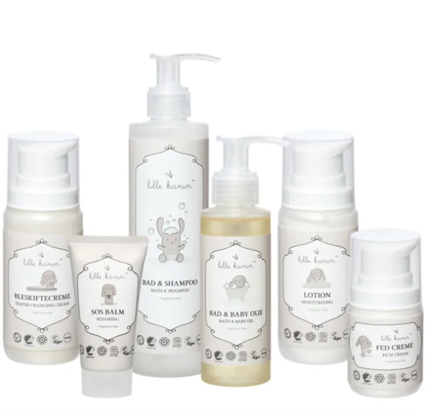 Se ingrediensliste, certificeringer og anvendelsen af produkterne under mærkesiden Lille Kanin.