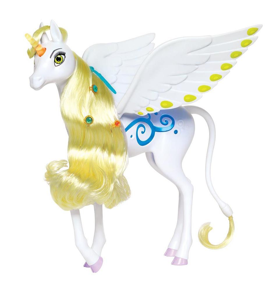 Der medfølger en børste. Enhjørningen er ca. 25cm, med magisk lyd og lys.